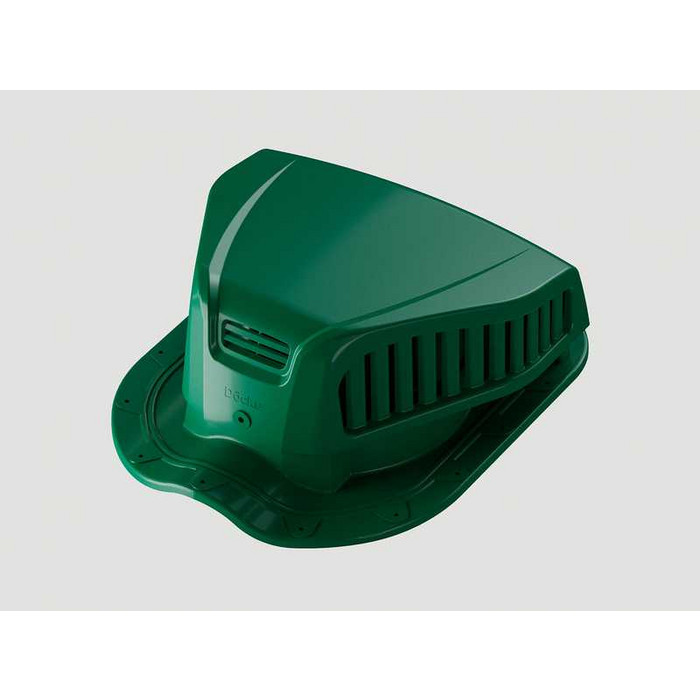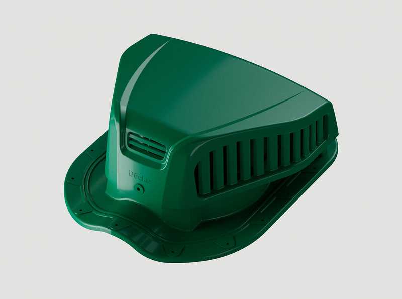 Насыщенный цвет смотрится свежо и ярко. Аэраторы хорошо сочетаются с мягкой черепицей любых оттенков зеленой цветовой палитры — от насыщенных однотонных до сложных градиентных.