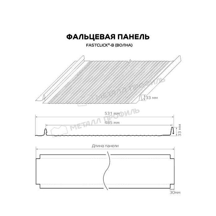 Вид фальцевой панели Волна