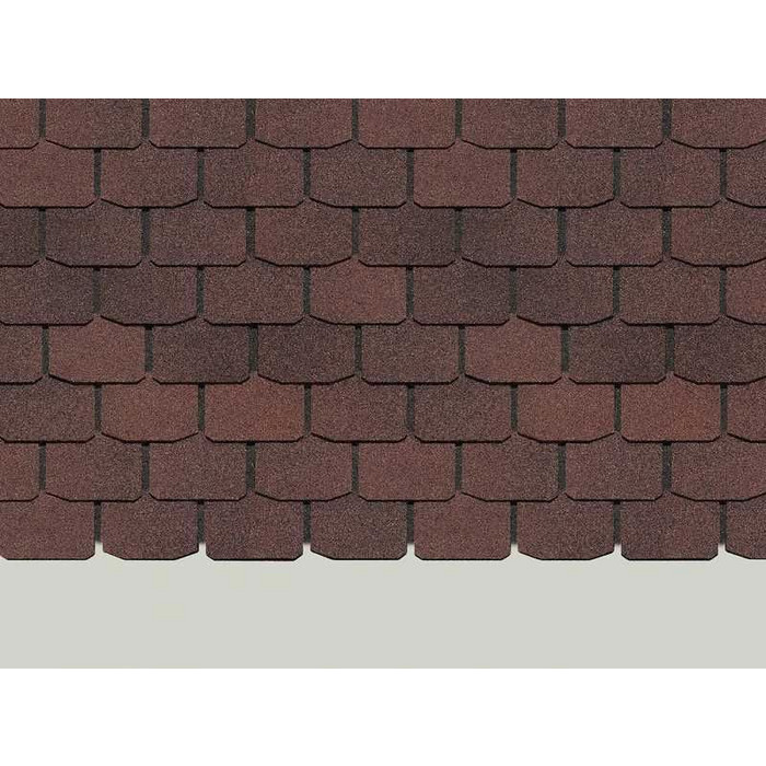 Матовая поверхность с минеральной посыпкой и красивые фигурные лепестки делают коричневый «сланец» практически не отличимым от натуральной глиняной черепицы. Подходит как для простых 2-скатных крыш, так и для сложных кровель. Хорошо сочетается со светлыми фасадами тёплых оттенков и коричневым цоколем.