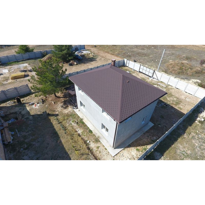 Насыщенные благородные оттенки с мягкими переливами цвета смотрятся благородно и дорого. Гексагональная форма лепестков гонтов и затемненные участки создают эффект объемного покрытия. Черепица отлично смотрится со светлым бежевым сайдингом, фасадными панелями под сланец, песчаник, юрский мрамор.