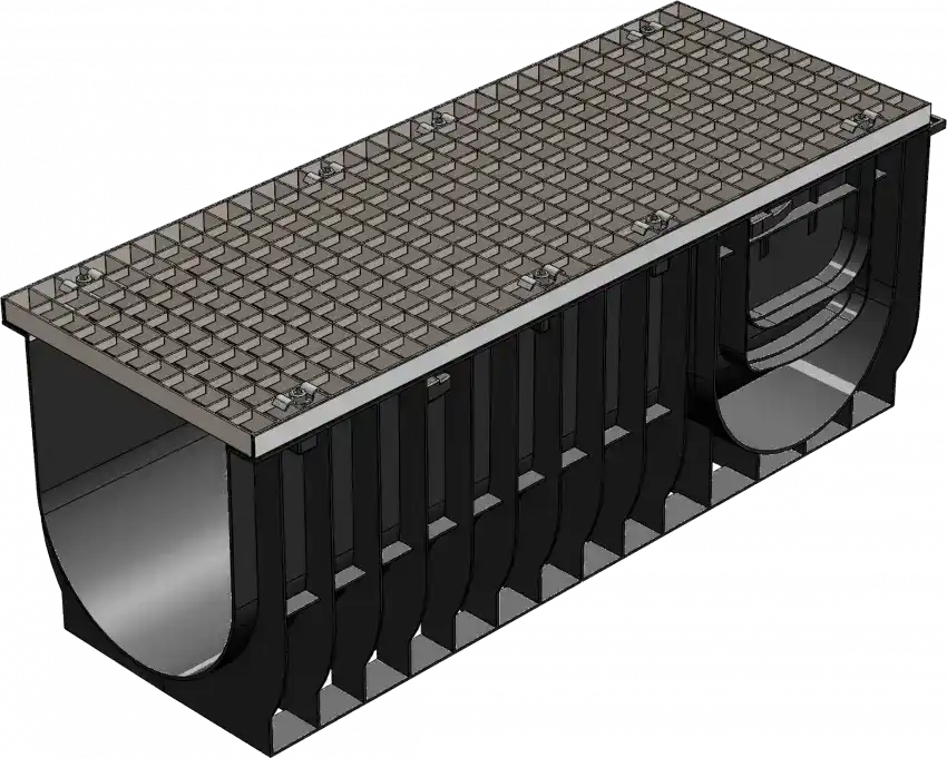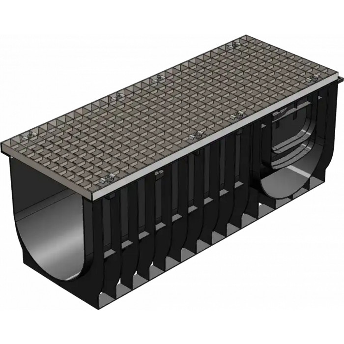 Комплект Gidrolica Light: лоток водоотводный ЛВ-30.38.39,6 - пластиковый c решеткой РВ -30.37.100 ячеистой стальной оцинкованной, кл. А15 (0830А)