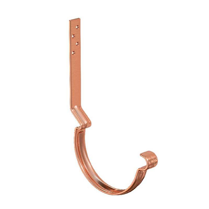 -Задний замок выполнен со смещением, что позволяет обеспечить наличие вентиляционного зазора между желобом и лобовой доской -Увеличенное «монтажное плечо» крюка (160 мм – длинный крюк; 230 мм – удлиненный крюк) удобный монтаж на разные уклоны крыши-Дополнительное ребро жесткости, увеличивающее прочность и надежность крюка-Особая марка стали повышенной прочности, цельнометаллическая полоса толщиной 4 мм с оцинковкой 275 г/м.кв.-Уникальность подтверждает фирменный штамп «лилия» расположенный в передней части.