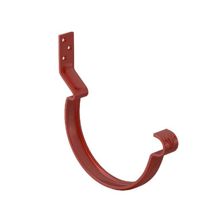 Конструкция крюка имеет более вытянутое и глубокое ребро жесткости, поэтому крюк выдерживает повышенные силовые нагрузки. Передний замок крюка фиксирует завиток желоба снаружи, и благодаря этому желоб удобно монтировать даже после установки фартука-капельника. Задний замок имеет конструкцию, исключающую смещение желоба под нагрузкой. Отверстия под крепеж выполнены с зенковкой под шляпку в потай. На передней части крюка расположен фирменный штамп - лилия.Поставляется с комплектом креплений.