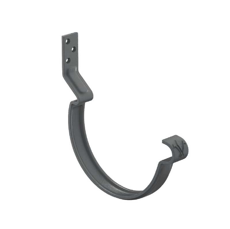 Конструкция крюка имеет более вытянутое и глубокое ребро жесткости, поэтому крюк выдерживает повышенные силовые нагрузки. Передний замок крюка фиксирует завиток желоба снаружи, и благодаря этому желоб удобно монтировать даже после установки фартука-капельника. Задний замок имеет конструкцию, исключающую смещение желоба под нагрузкой. Отверстия под крепеж выполнены с зенковкой под шляпку в потай. На передней части крюка расположен фирменный штамп - лилия.Поставляется с комплектом креплений.