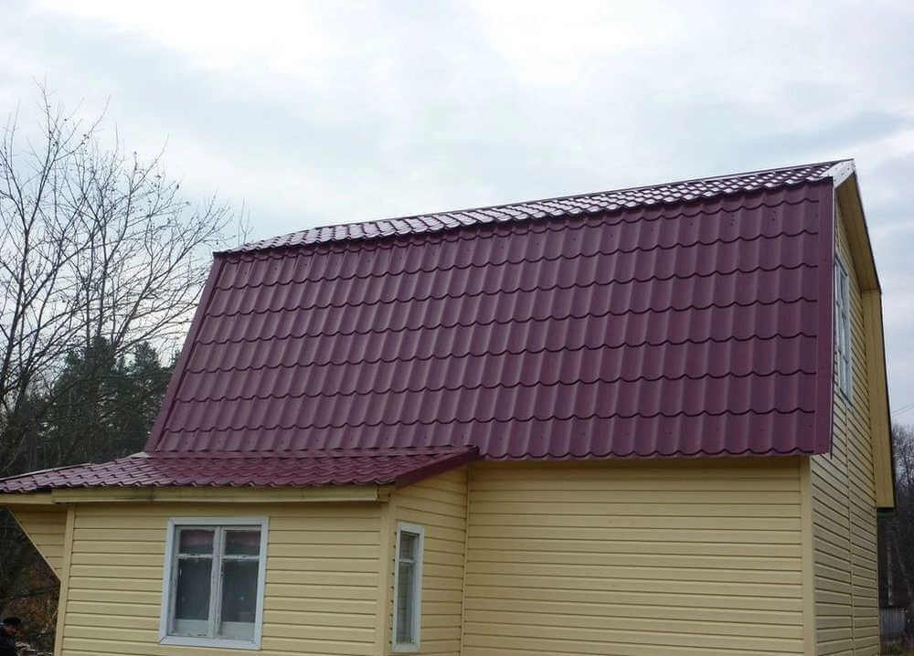 - Кровля защищена от механических воздействий, так как в основе металлочерепицы сталь толщиной 0.45 мм (с учётом металла, цинкового и полимерного слоя).