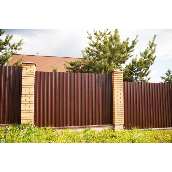 Профилированный лист представляет собой холоднокатаные стальные листы, обработанные декоративно-защитным покрытием Викинг Е. Это облицовочный материал, использующийся для отделки забора (особенно в стиле хай-тек). Профилированный лист МП-20x1100-A (VikingMP E-20-8017-0,5) популярен в Обнинске, так как он недорогой и практичный. При покупке профлиста обращайте внимание на рельеф: чем более он усилен, тем прочнее материал.