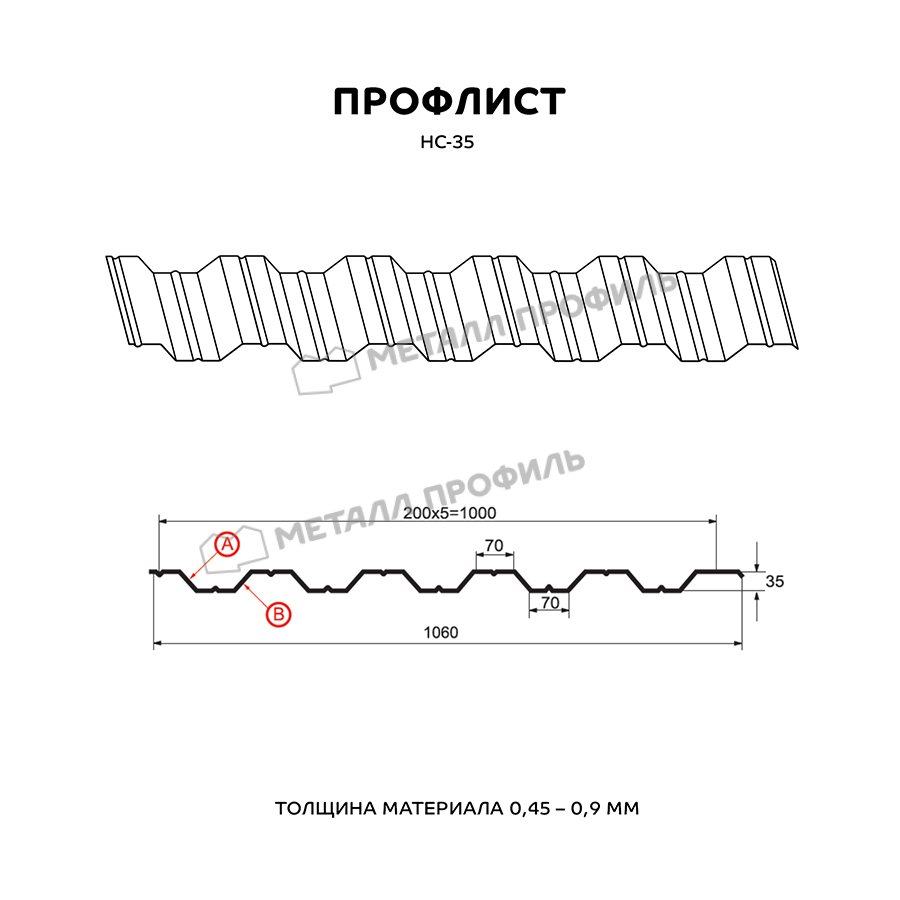 Многоцелевой и выгодный материал с симметричным профилем. Маркировка НС говорит о том, что профнастил является и «несущим», и «стеновым». Он пользуется спросом как для гражданского строительства, так и для промышленных объектов. Из профнастила с высотой волны в 35 мм создаются конструкции совершенно разного плана: быстровозводимые постройки ( навесы, павильоны ), каркасные здания ( цеха, склады, торговые центры ), ограждения частных и общественных территорий, обустройство кровли. Отличную способность выдерживать нагрузки НС-35 обеспечивают специальные желобки, которые расположены на лицевой и внутренней сторонах листа. Полезная ширина этого профиля составляет 1000 мм при полной ширине 1060 мм, получается, что при установке данного металлопрофиля в боковое соединение скроется 60 мм. Толщина металлопроката имеет диапазон от 0,5 до 0,9 мм – это обуславливает не только механическую стойкость стройматериала, но и его тяжесть. Полимерный слой из линейки Компани Металл Профиль добавит материалу улучшенную стойкость к коррозии и УФ-излучению.