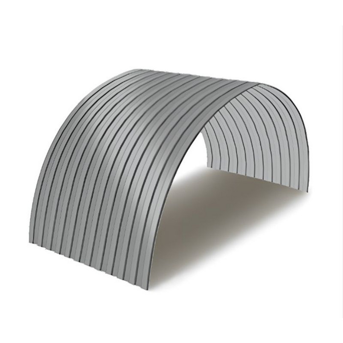 Профнастил для арочных перекрытий используется прежде всего при строительстве различных арочных конструкций, у которых существует определенный изгиб по радиусу. Он активно применяется при возведении ангаров, складов, зернохранилищ, различных округлых и полукруглых вариантов крыш и кровли. С его помощью можно построить как большое здание сельскохозяйственного назначения, так и красивый эстетичный навес для автомобиля площадью несколько квадратных метров. Основной отличительной особенностью данного вида профлиста является его изогнутая по радиусу форма, сформированная на специально предназначенной для этого профилегибочной линии. Радиус изгиба может быть самый разнообразный, и зависит прежде всего, от требований заказчика и характеристик будущего здания. Плюсами такого материала являются как его изготовление в заводских условиях, так и геометрическая точность, в результате чего стыки листов практически не видны и конструкция выглядит действительно монолитной.