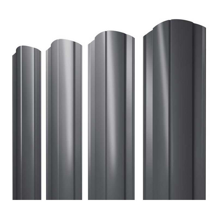 Штакетник Полукруглый Slim фигурный Grand Line 0,5 GreenCoat Pural BT, matt RR 23 Темно-Серый